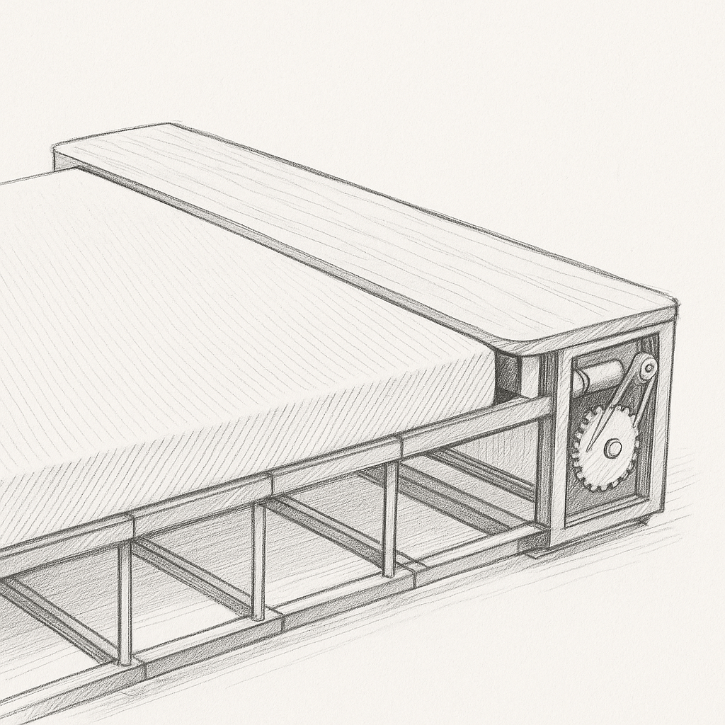 What struck me was that most mattresses today are shipped rolled up — vacuum-sealed, compressed, and coiled. I wondered: if we can roll a mattress once, why not again? Why not after every use? I casually shared this thought with a friend who works on industrial mattress rolling machines — and the idea clicked. What if we could build a compact, electric version for home use?